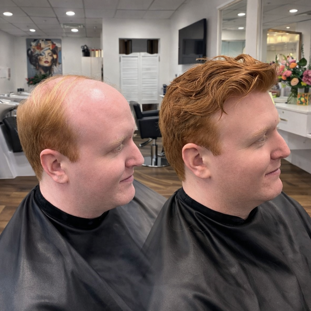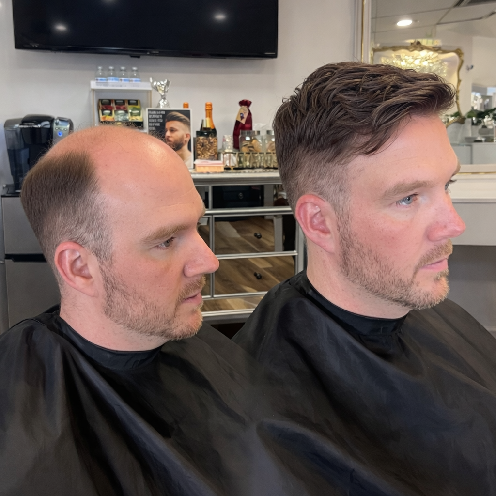 Hair systems are a non-surgical solution for hair loss, restoring a natural hairline, density, and confidence. Custom-fitted to your scalp, they blend seamlessly, look undetectable, and allow you to style, train, and live without limits.
